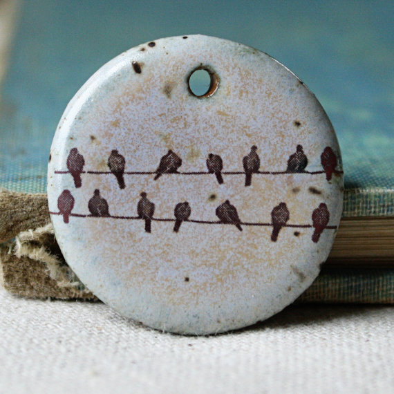 Mary Harding (above) not only makes some very pretty nature inspired ceramic components, but I learned that she also felted the earthy wool to make the necklace and used some tutorials from both Heather Powers and Cindy Wimmer to make some wire components in her striking necklace that perfectly embodies this pastoral scene.